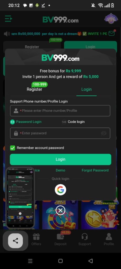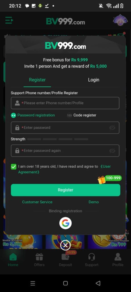 How to get registered and Login BV999 Game?